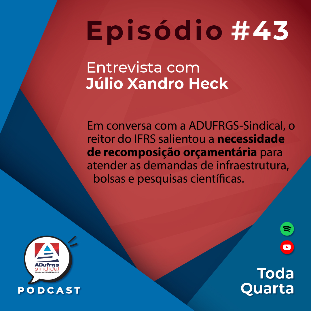 Este episódio traz uma entrevista com o reitor do Instituto Federal do Rio Grande do Sul, IFRS, Júlio Xandro Heck sobre a necessidade de recomposição orçamentária para atender as demandas de infraestrutura, bolsas e pesquisas científicas.