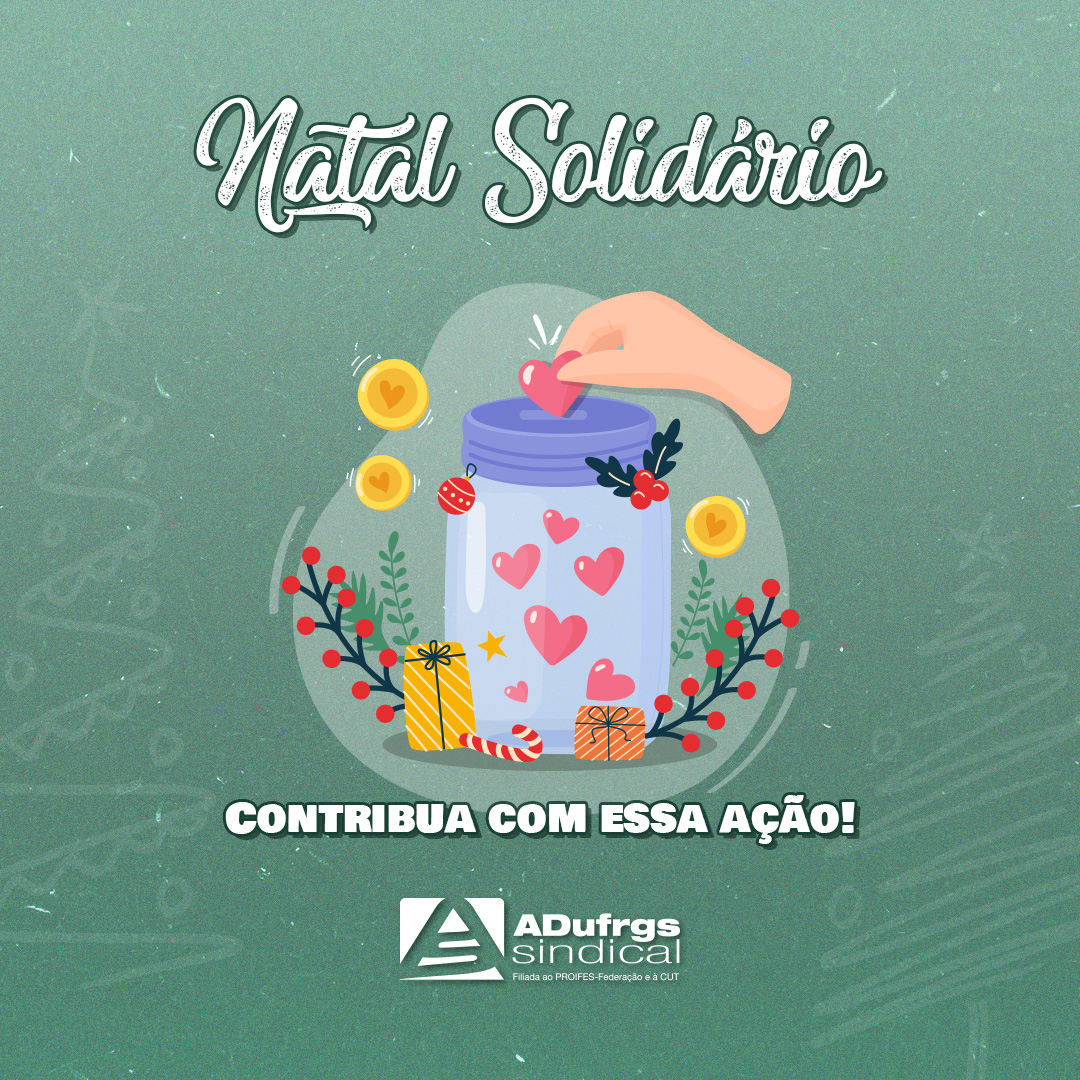 Comprometida com as causas sociais, neste final de ano a ADUFRGS-Sindical promove o Natal Solidário, que vai arrecadar alimentos para as comunidades necessitadas.