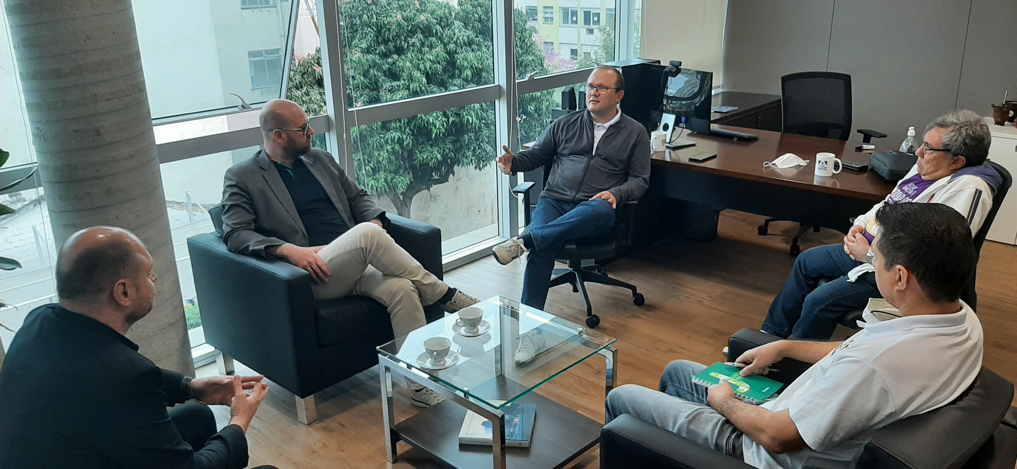 Nesta sexta, 2, a diretoria da ADUFRGS-Sindical esteve reunida com representantes do Sistema de Cooperativas Financeiras do Brasil (Sicoob). Os professores Jairo Bolter, presidente do sindicato, e Eduardo Rolim, tesoureiro, receberam os representantes da entidade. O objetivo foi tratar de oportunidades de serviços financeiros da cooperativa para filiados/as e funcionários/as da entidade.