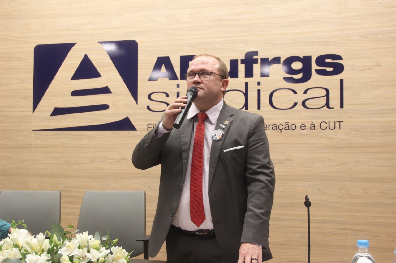 Durante a cerimônia de posse da diretoria gestão 2022-2025b da ADUFRGS-Sindical, realizada dia 23 de agosto, o presidente Jairo Bolter reflete sobre a conjuntura política, econômica e social do Brasil e reforça o compromisso do sindicato com a defesa da educação pública, gratuita, inclusiva e de qualidade social, além de instituições com autonomia, democracia e liberdade de cátedra.
