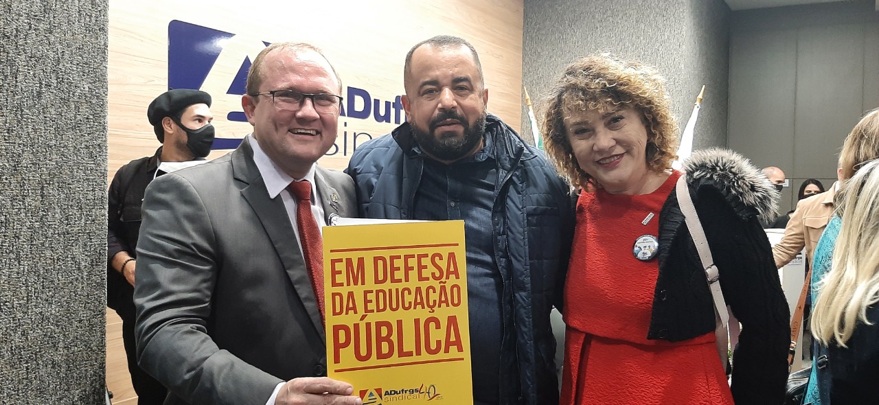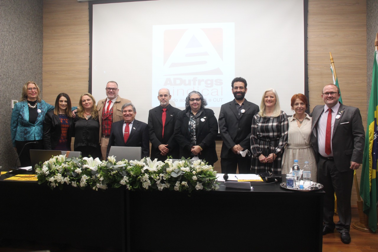 Assista a posse da Diretoria da ADUFRGS-Sindical eleita para o triênio 2022-2025, estatutariamente realizada nesta terça-feira, 23, junto à Assembleia Geral Ordinária, prestação de contas e posse do Conselho de Representantes do triênio.
