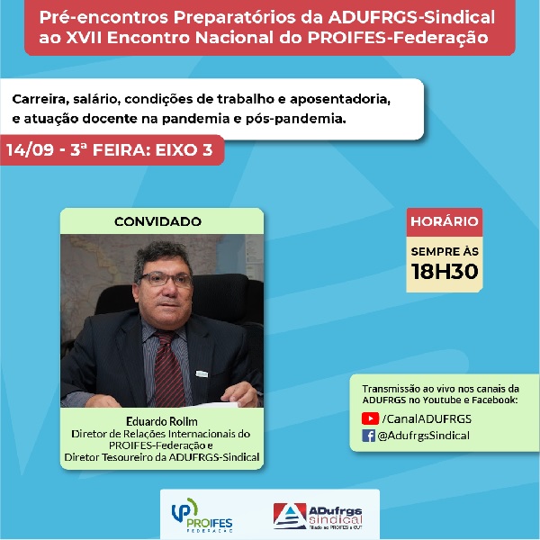 Estará em debate o Eixo 3 “Carreira, salário, condições de trabalho e aposentadoria, e atuação docente na pandemia e pós-pandemia”