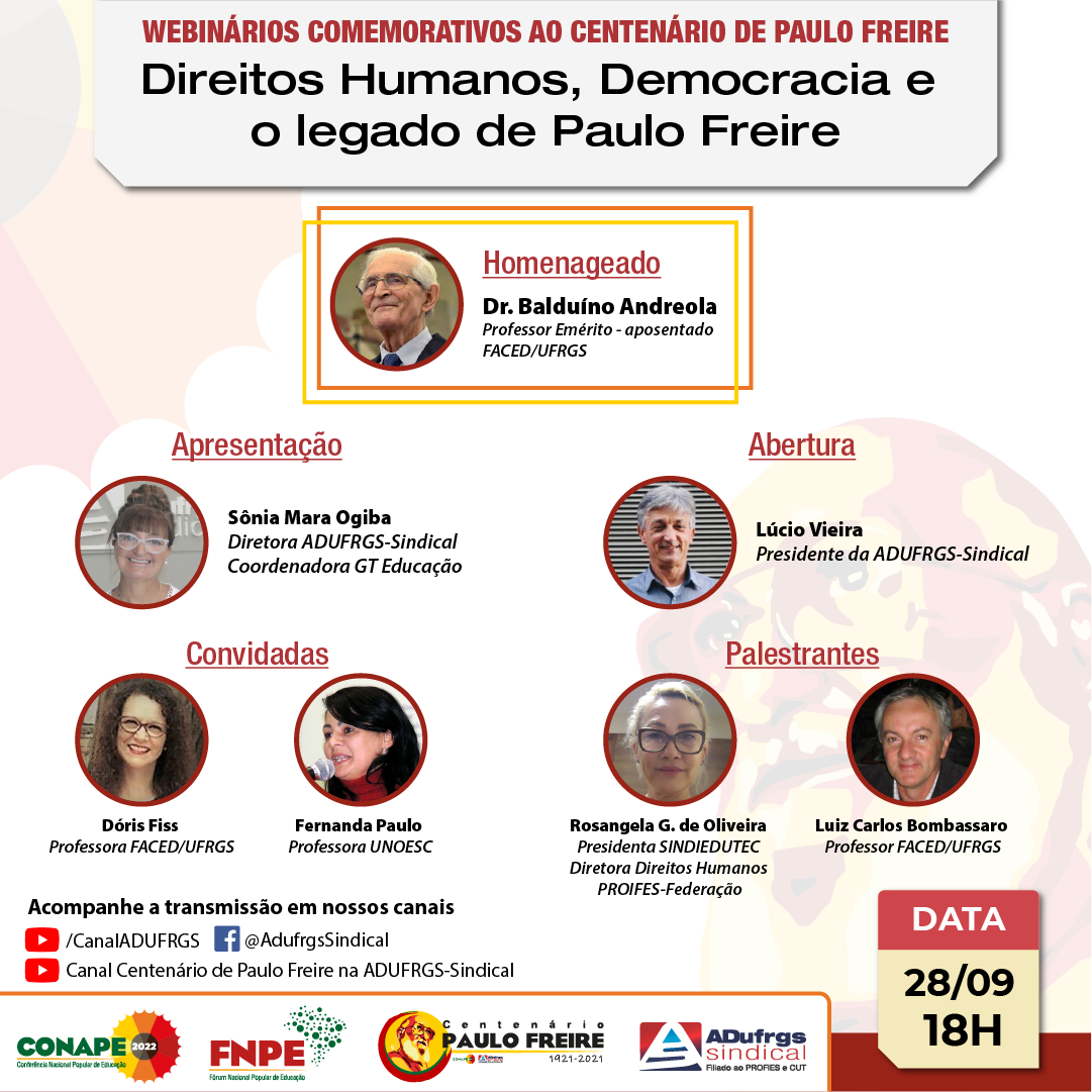 - ADUFRGS-Sindical participa da programação da Semana Freiriana do PROIFES-Federação
