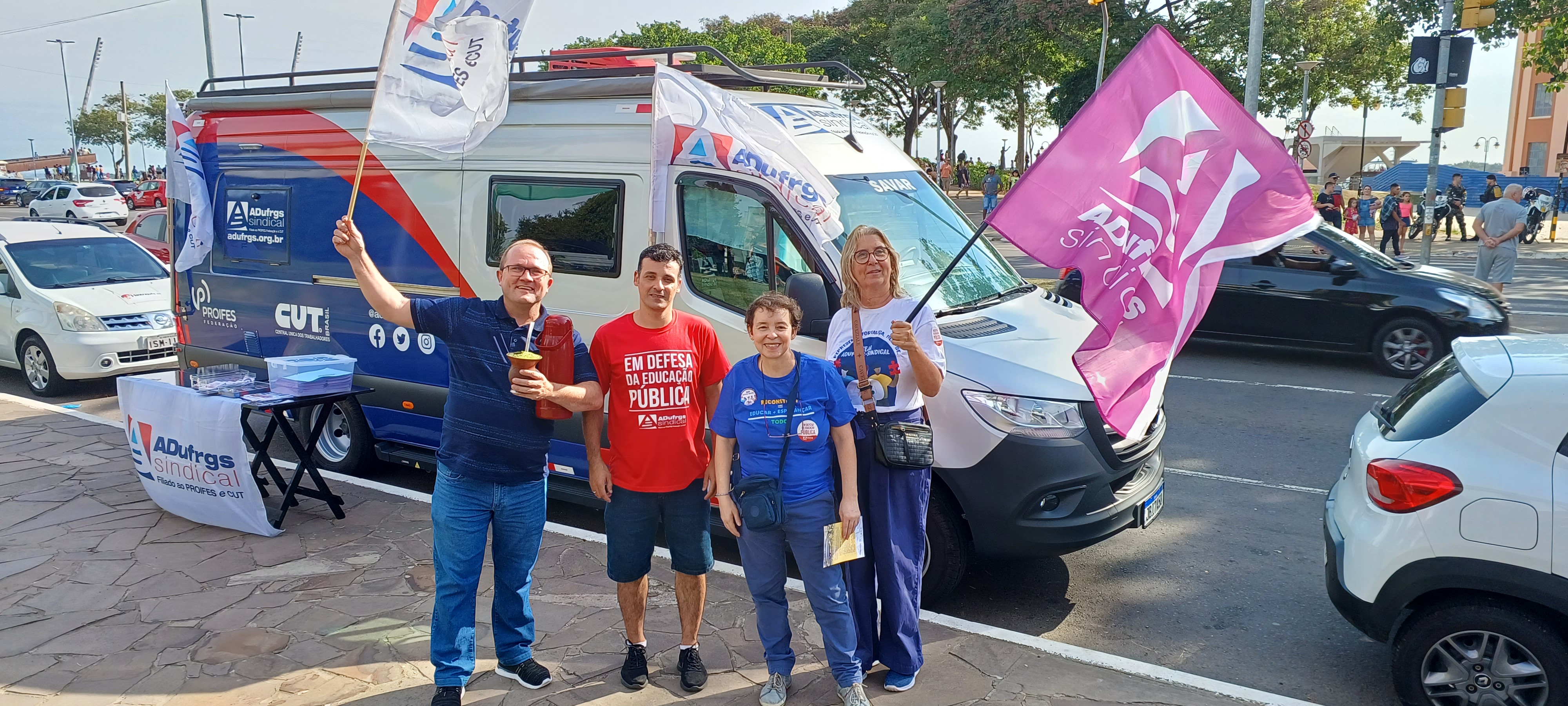 A ADUFRGS-Sindical estará com sua Unidade Móvel no ato unificado que a CUT-RS e centrais sindicais do Rio Grande do Sul organizam para segunda-feira, 1º de Maio, e convida filiados e filiadas a participarem. A atividade acontece das 14h às 18h, com shows culturais, na Praça da Usina do Gasômetro, em Porto Alegre.