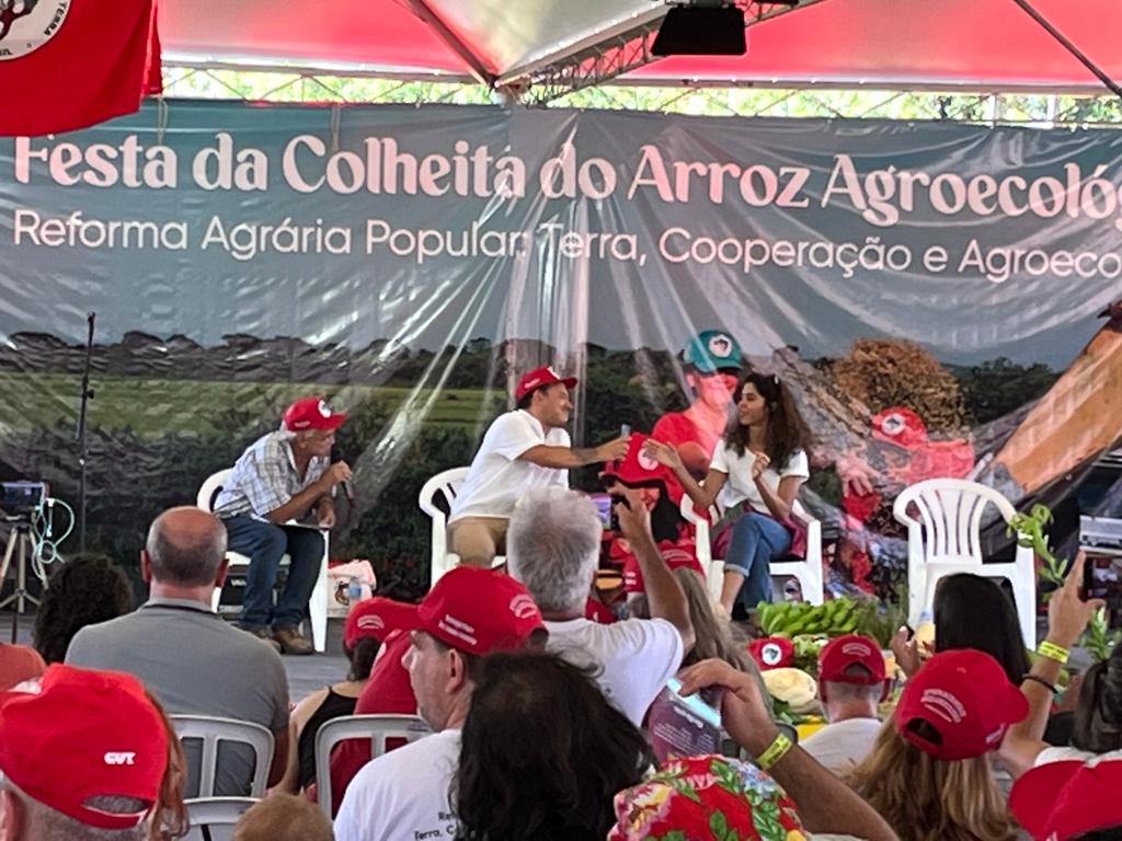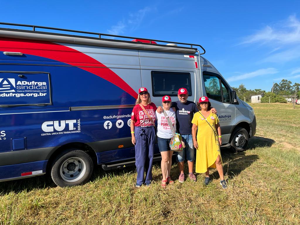 Na manhã desta sexta-feira, 17, a professora Regina Witt, diretora de Secretaria da ADUFRGS-Sindical, a professora Graciela Quijano do Conselho de Representantes, e o professor de Veterinária da UFRGS, Félix González participaram da 20ª Festa da Colheita do Arroz Agroecológico, no assentamento Filhos de Sepé, em Viamão.